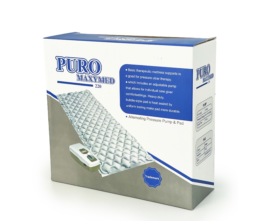 تشک مواج تخم مرغی Puro Maxymed220 با ظرفیت پمپ 8 لیتری و بهترین فشار هوای توصیه شده ضمن گردش دقیق هوا درون سلول های تشک مواج کمک بزرگی به بهبود گردش خون در سلول های پوستی و بهبود اکسیژن رسانی به پوست خواهد نمود. این تشک مواج به فشار پمپ 45-115 mmHg می تواند در 7 دقیقه سیکل گردش هوا را کنترل نماید. و با دکمه تعبیه شده بر روی پمپ عملکرد دستگاه قابل کنترل می باشد.